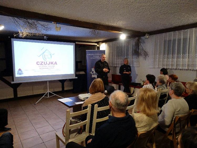 W drugiej części spotkania policjanci omówili wybrane przestępstwa popełniane na szkodę osób starszych: m. in. oszustwa metodą „na wnuczka” i „na policjanta”. Mundurowi zwrócili uwagę na konieczność stosowania profesjonalnych i legalnych zabezpieczeń w komputerach, tabletach i smartfonach, tak aby w maksymalnym stopniu zabezpieczać dane osobowe. Seniorom zaprezentowane zostały wizerunki i dane kontaktowe do policjantów z Rewiru Dzielnicowych. Policjanci zachęcali do kontaktu z Policją poprzez wykorzystywanie aplikacji Moja Komenda. Natomiast na zakończenie przedstawione zostały założenia Krajowej Mapy Zagrożeń Bezpieczeństwa jako narzędzia przydatnego w celu poprawy bezpieczeństwa w miejscu zamieszkania.