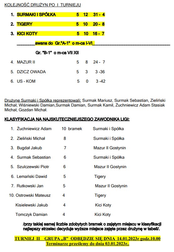 GRUPA „A” Tigery, Kici Koty,Mazur II, Dzicz Owada, US-KOM, Surmaki i Spółka, GRUPA „B” Błyskawica Lucień, Mega-Bruk, Grupa Balcerzak, Mongolscy Przemytnicy Rzeżuchy, FC Drzewce, Mazur I.