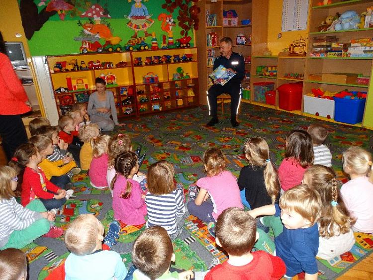 Szef gostynińskiej Policji mł.insp. Zbigniew Włodkowski odwiedził dzieci z Przedszkola Miejskiego nr 2 w Gostyninie. Komendant czytał przedszkolakom wiersze i bajki w ramach kampanii społecznej „Cała Polska czyta dzieciom”.