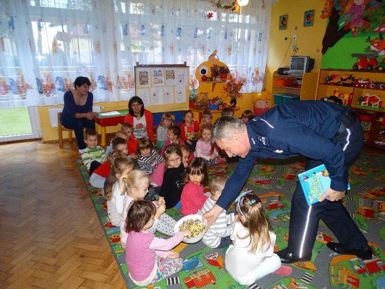 Dzisiaj (19.11.) mł.insp. Zbigniew Włodkowski spotkał się z grupą maluchów z Przedszkola Miejskiego nr 2 w Gostyninie. Komendant czytał przedszkolakom bajki i wiersze. Jak się okazało dzieci to niezwykli słuchacze, a takie działania ukazują jak ważną rolę w życiu malucha pełni głośne czytanie. W trakcie spotkania przedszkolaki recytowały wierszyki i odśpiewały piosenkę. Ze starszakami nie zabrakło rozmów na temat bezpiecznego poruszania się po ulicach. Na zakończenie Komendant obdarował najmłodszych słodkościami, a dzieci wręczyły mu gipsowego „policjanta-aniołka”.