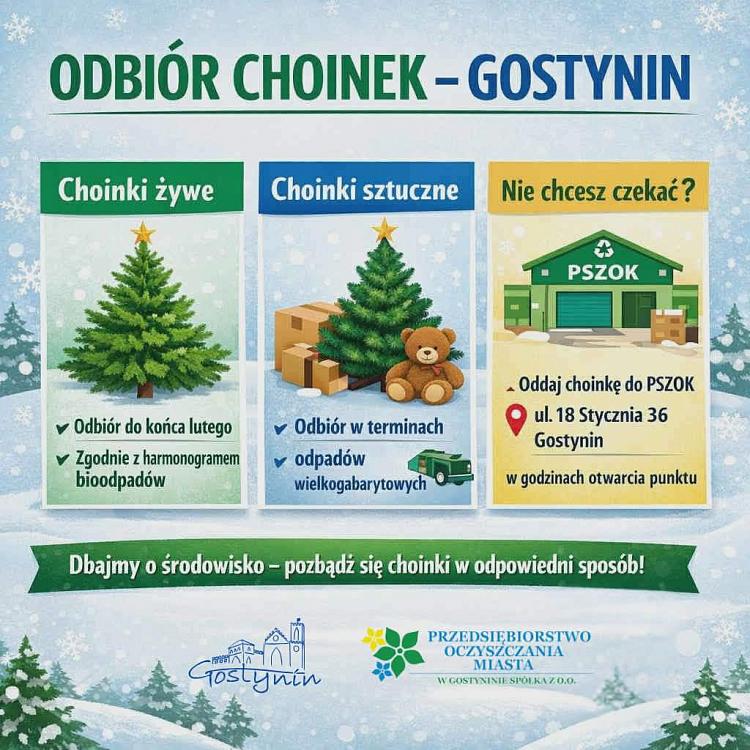3. Osoby, które nie chcą czekać na termin odbioru mogą dostarczyć drzewko do Punktu Selektywnej Zbiórki Odpadów Komunalnych przy ul. 18 Stycznia 36 w Gostyninie w godzinach funkcjonowania punktu.