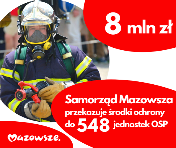 Samorząd Mazowsza przeznaczył 8 mln zł na zakup środków ochronnych dla strażaków ochotników. Pierwsza część zamówienia już została przekazana do 541 mazowieckich OSP, ostatecznie otrzyma je 548 jednostek OSP w KSRG.