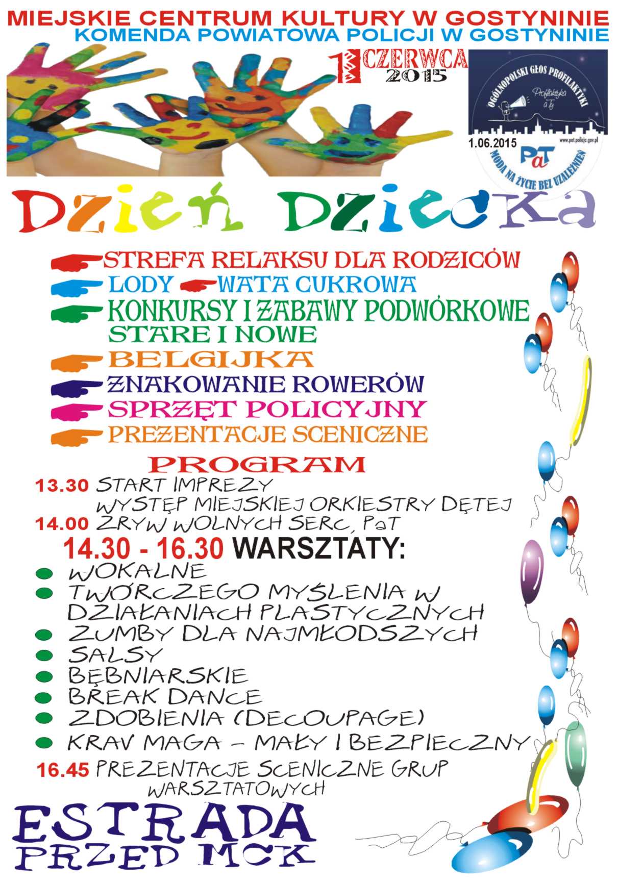 Miejskie Centrum Kultury w Gostyninie oraz policjanci Komendy Powiatowej Policji w Gostyninie zapraszają mieszkańców na „Ogólnopolski Głos Profilaktyki”, który odbędzie się 1 czerwca na terenie MCK od godz. 13.30.